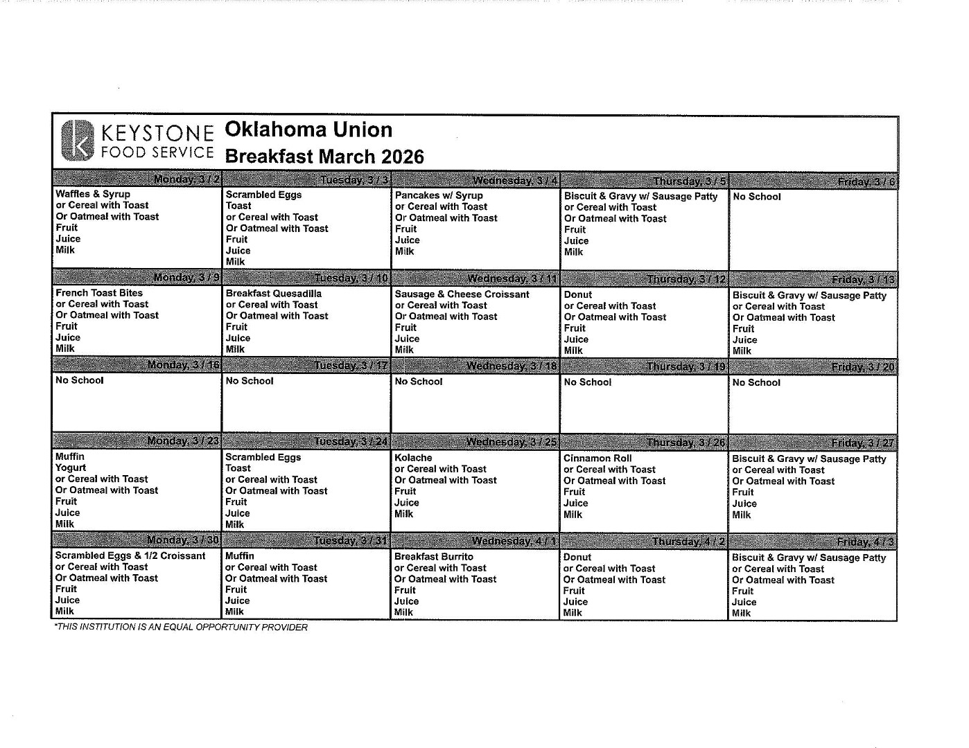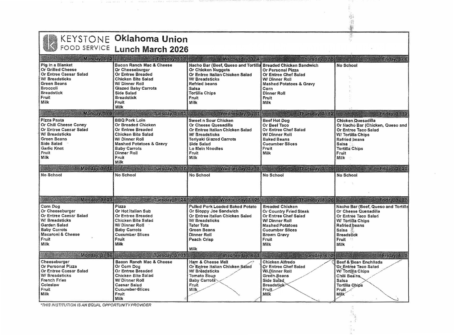 OKU Menus for March - Updated 02.27.26)